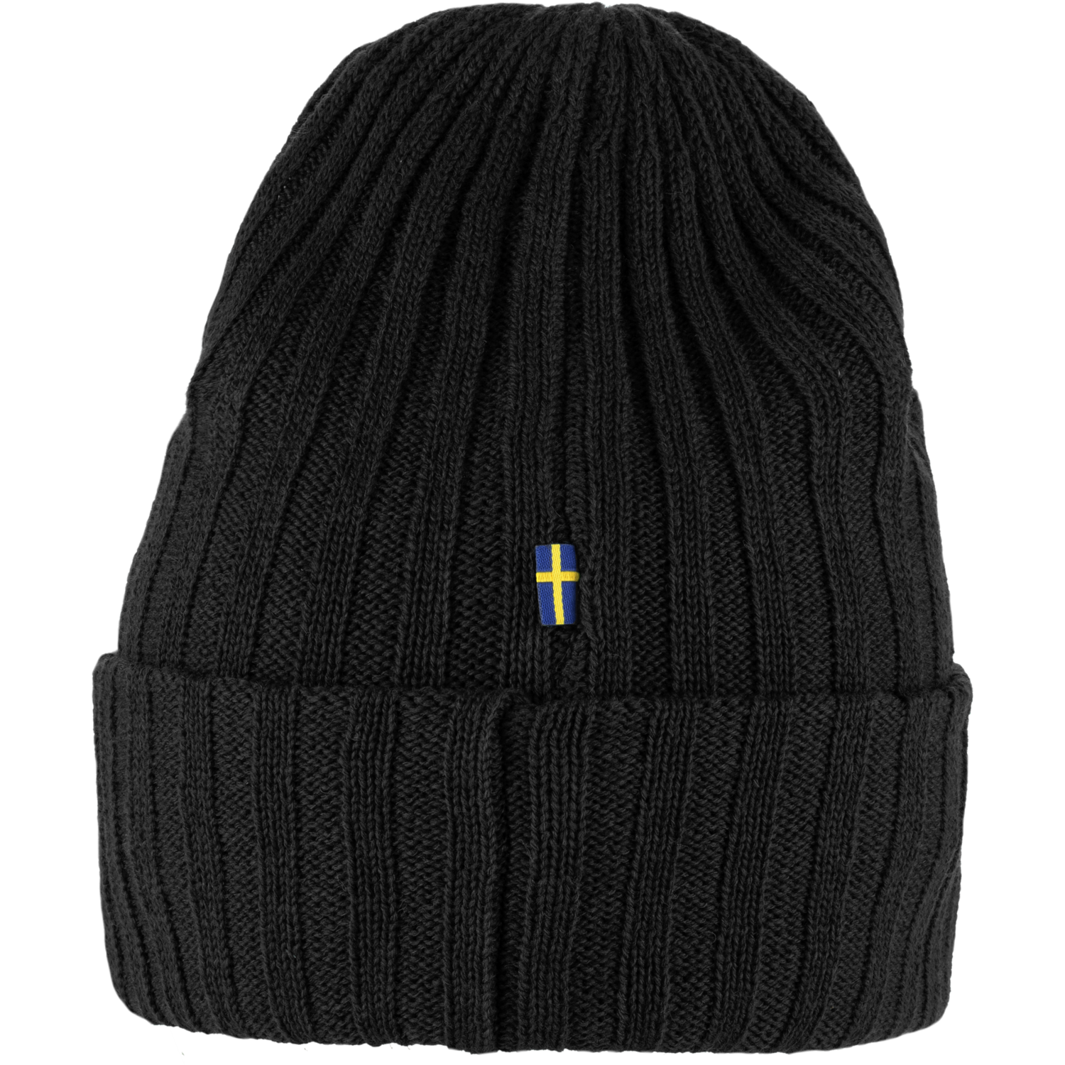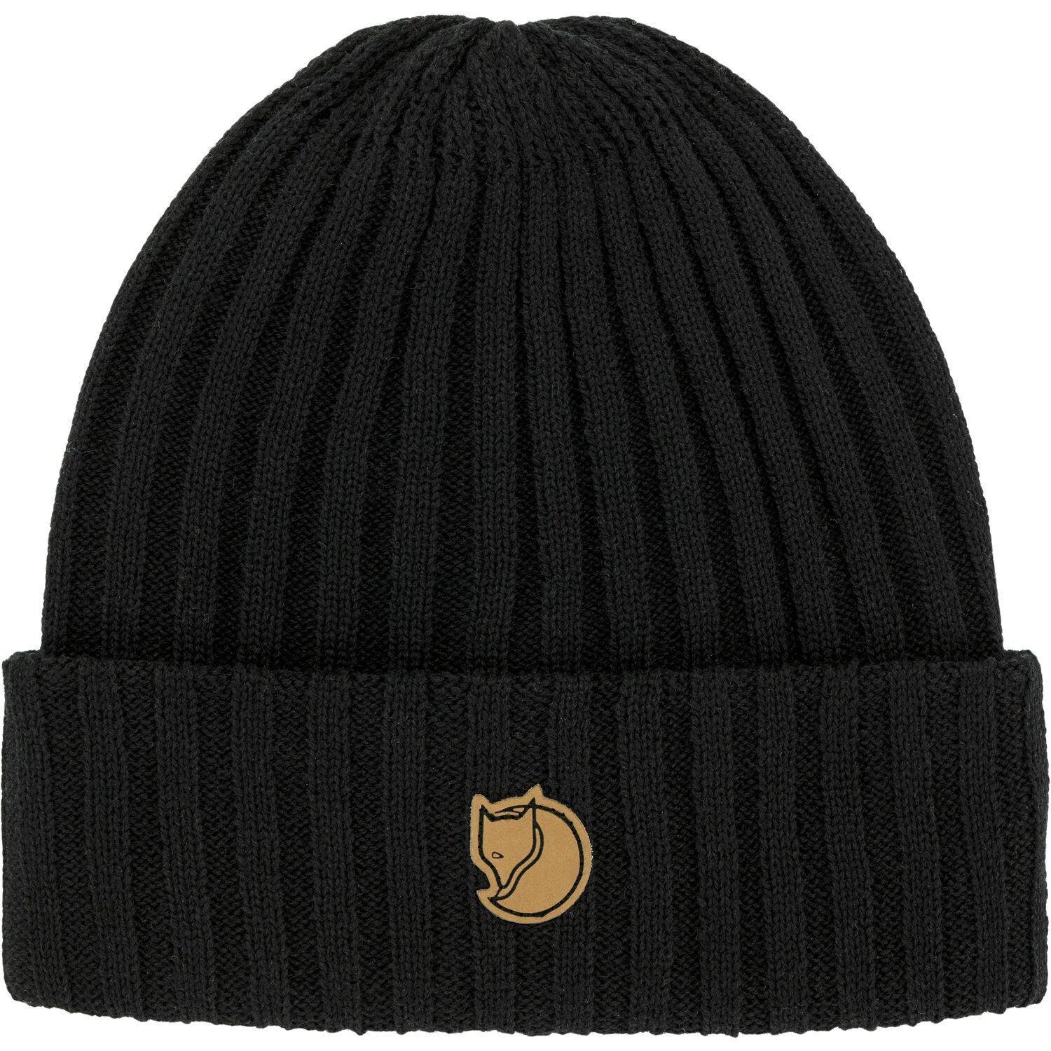 Dobbelt strikket hat i uld, der gør den både varm og holdbar. Dobbelt fold forneden og ribstrikket, så den sidder godt. Polarræv på panden.