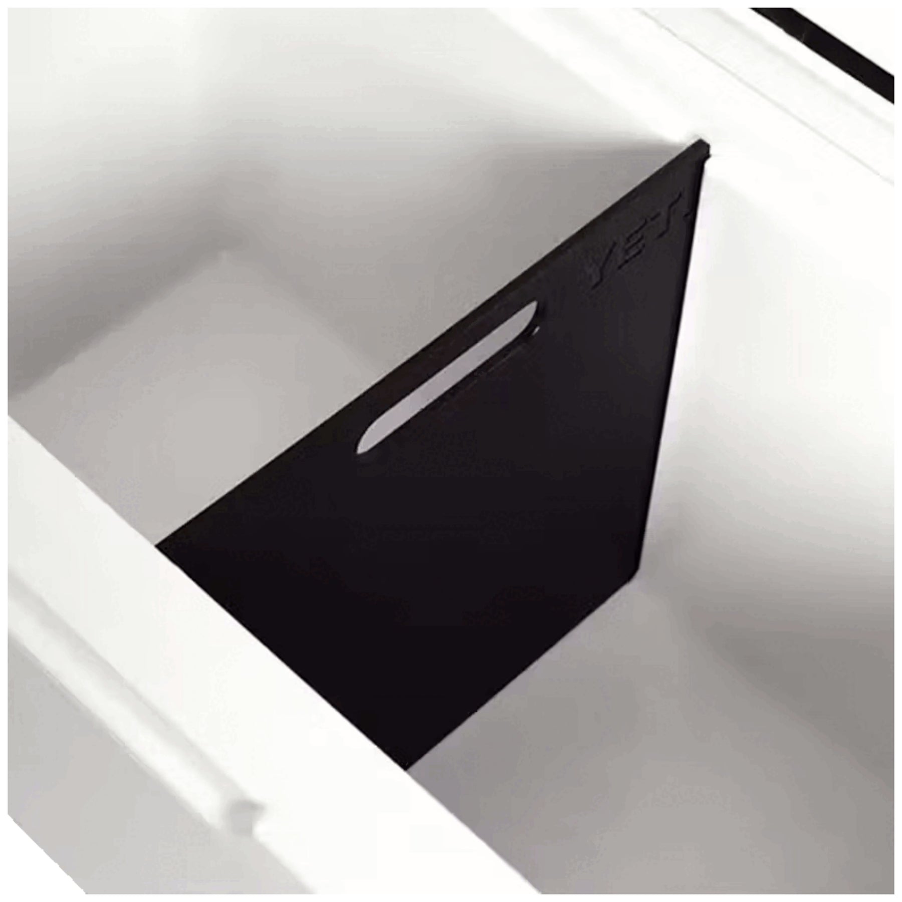 Organisér din køleboks med en skillevæg. Ved at bruge enten den vandrette eller lodrette skillevæg kan du opdele dine varer, så f.eks. karbonader ikke kommer til at røre ved øl. Skillevæggen passer direkte ned i den indstøbte skinne i køleren. Når den ikke bruges som skillevæg, kan den også anvendes som skærebræt.